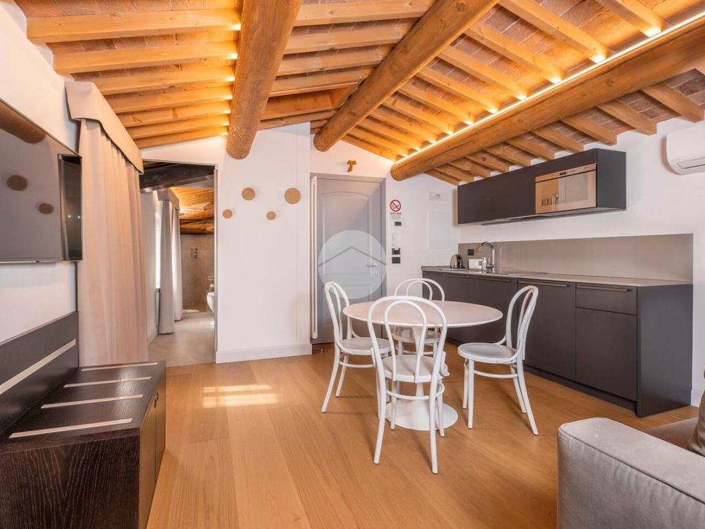 Ogni bilocale presenta una ristrutturazione di pregio, effettuata per valorizzare al meglio ogni minimo dettaglio interno e per rendere tale soluzione unica nel suo genere. Internamente composti da soggiorno con angolo cottura, una camera matrimoniale ed un bagno finestrato, riscaldamento centralizzato a radiatori e aria condizionata con split in ogni unità. Completa l'intera abitazione una corte interna esclusiva, facilmente utilizzabile anche come posto auto con capienza massima di circa tre automobili.