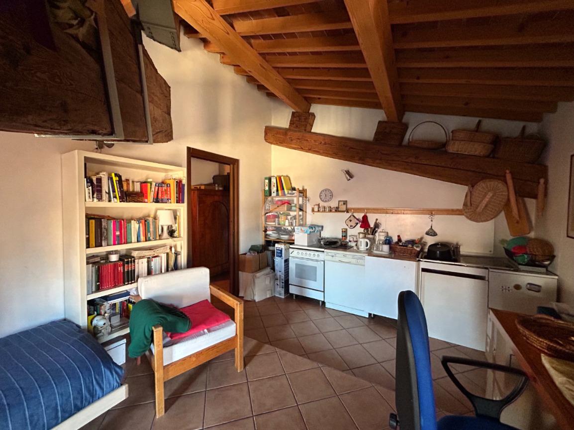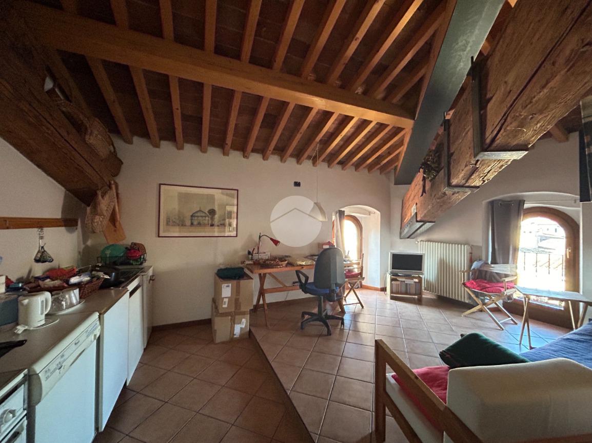 La proprietà, di circa 85 mq, si sviluppa in ambienti luminosi, impreziositi da una cornice storica di rara bellezza. L’ingresso apre su un ampio soggiorno con travi a vista, seguito da una cucina abitabile, una camera matrimoniale e un bagno finestrato con doccia.