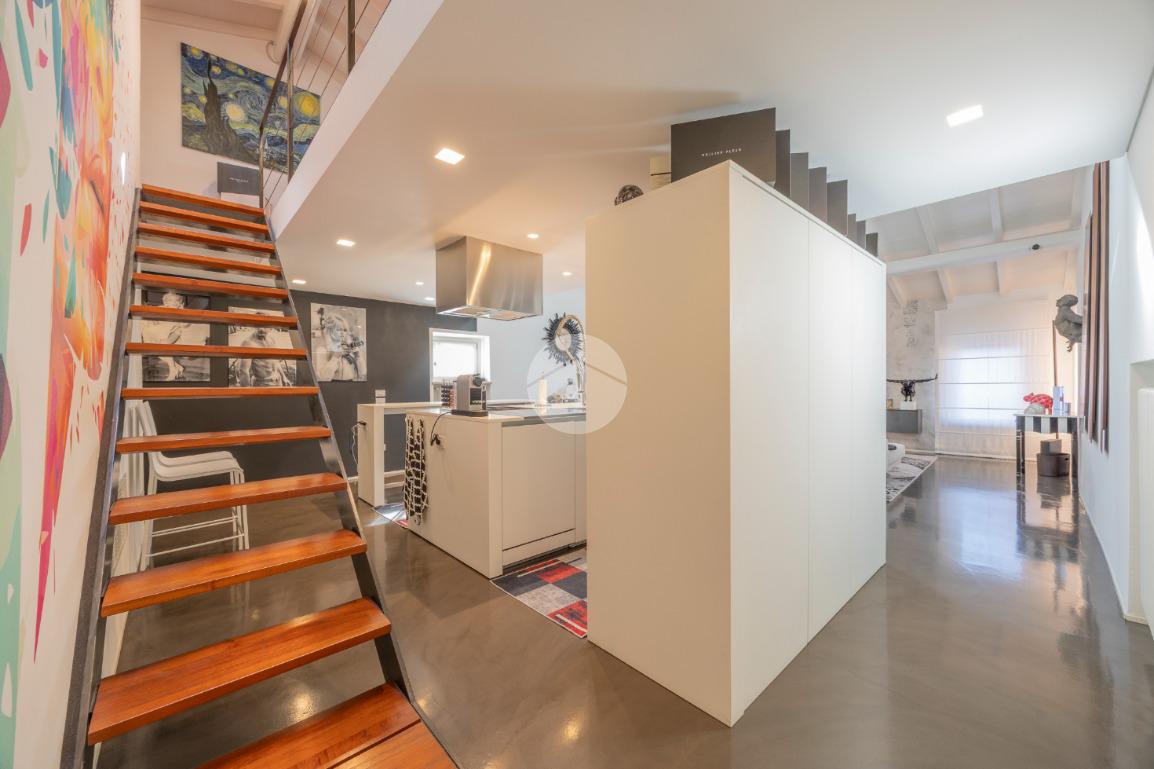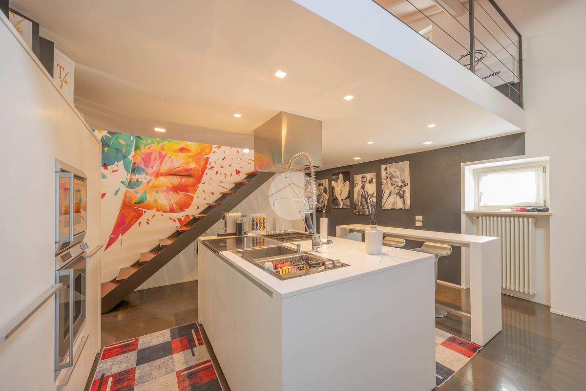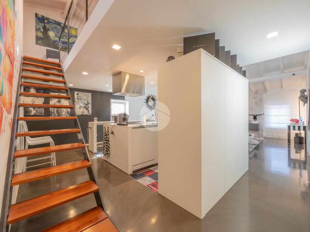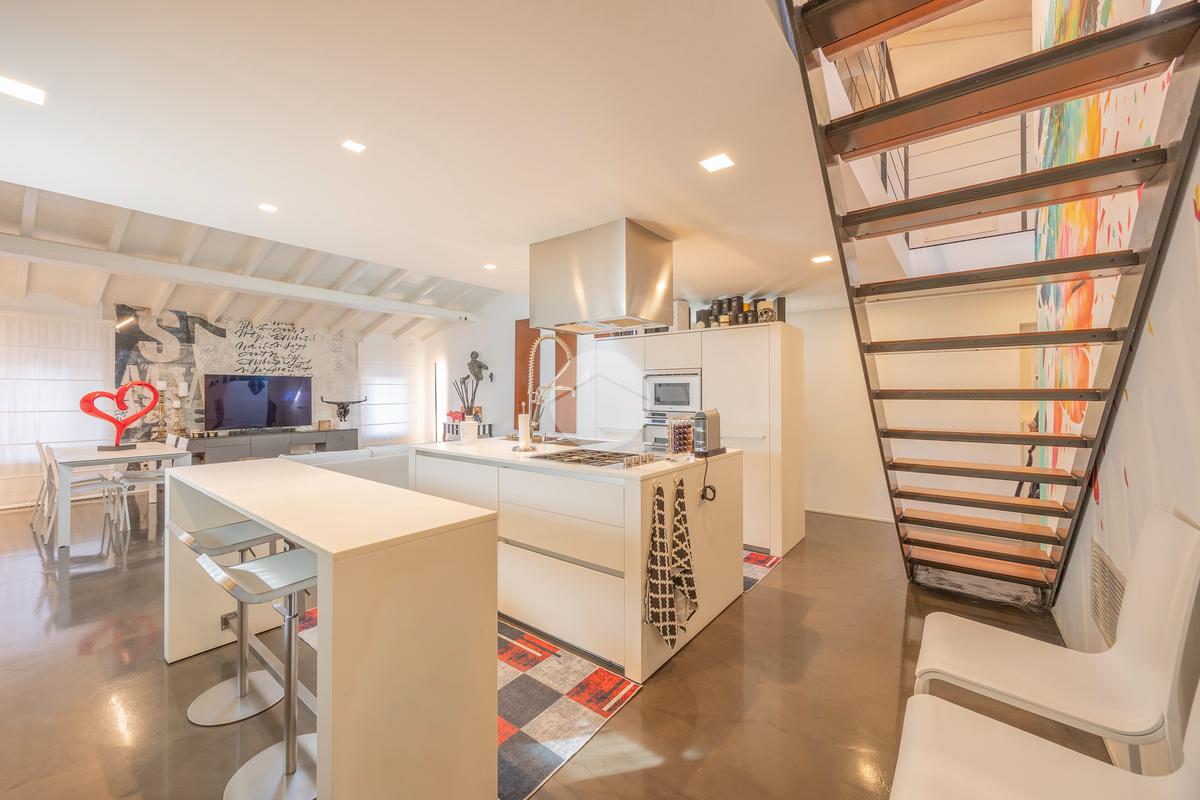 La proprietà si apre su un’ampia zona living openspace con cucina a vista, dove le linee pulite e il pavimento in resina esaltano la continuità degli spazi e la qualità architettonica dell’intervento.