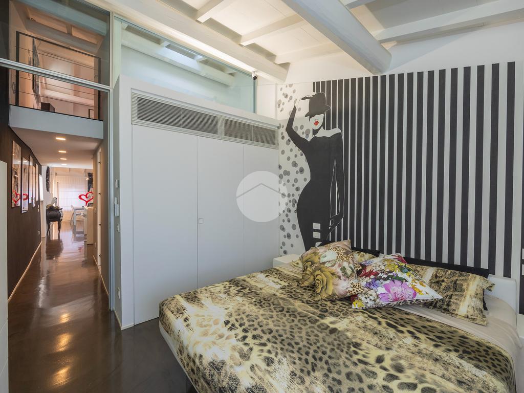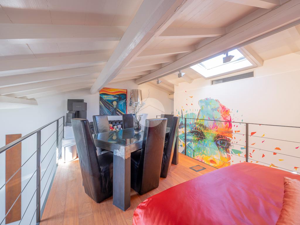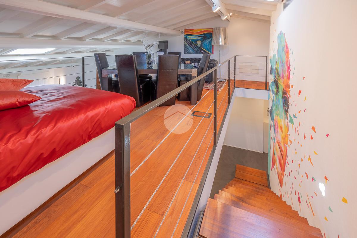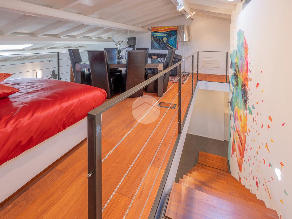 Un soppalco perfettamente integrato nel volume dell’abitazione, offre la possibilità di creare una terza camera, uno studio privato o una zona relax.